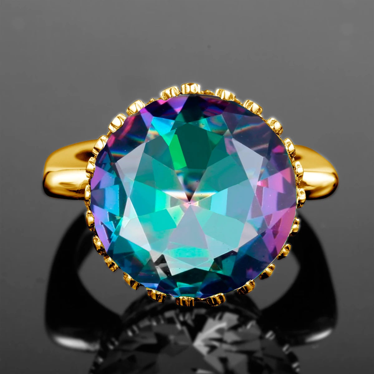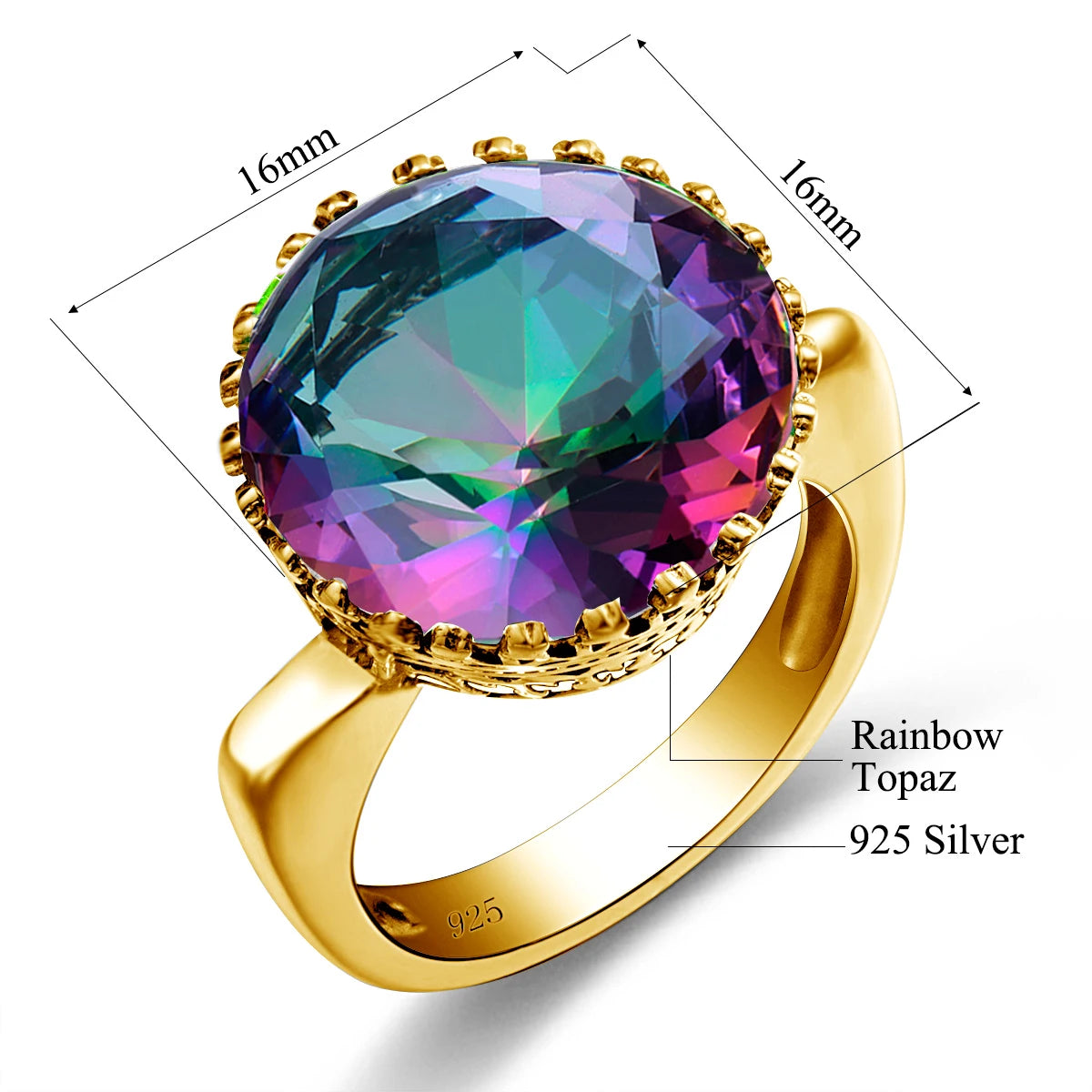 - Main Stone: Mystic Topaz (15x15mm Round)