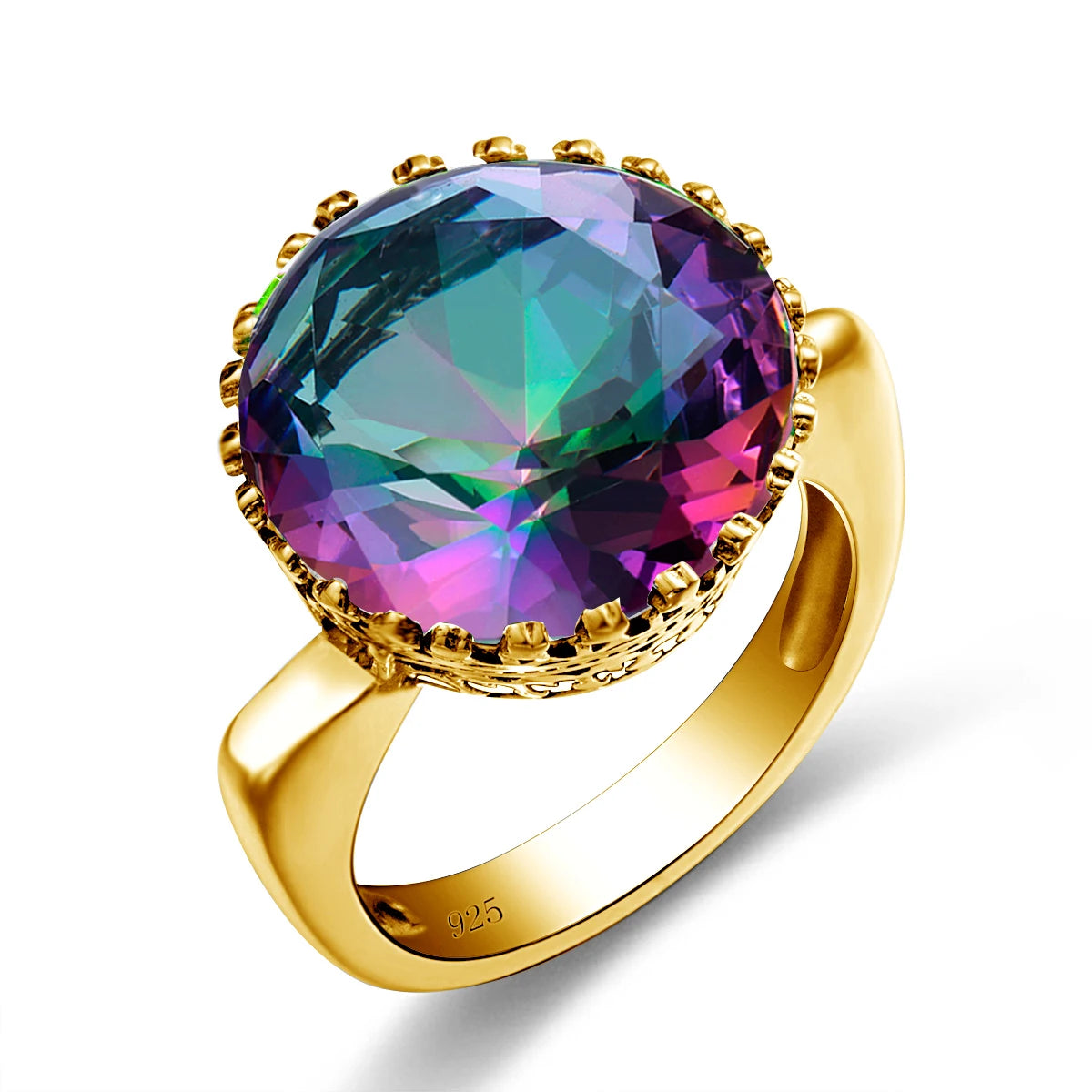15x15mm Round Mystic Topaz Statement Ring – 925 Sterling Silver, Birthstone Luxury Party Jewelry